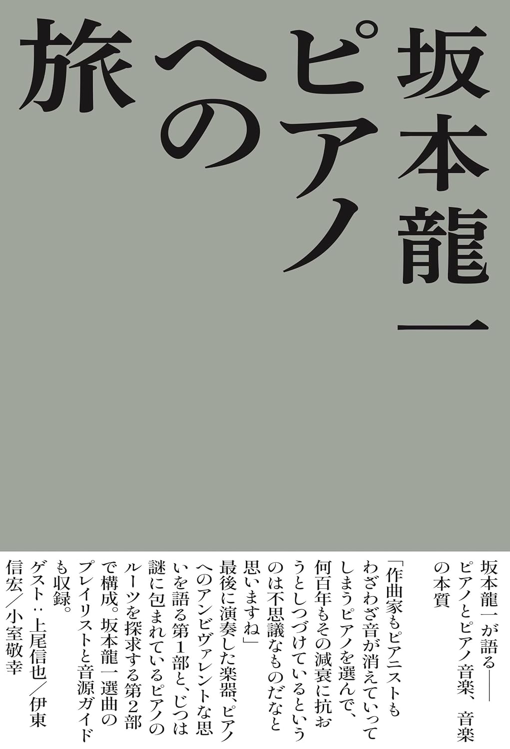 내용"수많은 현을 걸고, 키보드 메커니즘을 이용해 두드려 소리를 내는 이 아이디어는 과연 언제, 어디서, 왜 탄생한 것일까?" 사카모토 류이치가 마지막으로 연주한 악기, 피아노. 그에 대한 복잡한 감정을 담아, 클래식 음악과 함께 걸어온 자신의 경험을 바탕으로 피아노의 본질을 탐구하는 제1부 「조용하고 나약한 음악으로」, 기원전까지 거슬러 올라가 건반악기의 기원을 파헤치는 제2부 「피아노의 기원을 찾아서」로 구성. 「Commons: Schola 음악의 학교」 시리즈의 최종권 『vol.18 피아노 여행』(2021년 7월 발간)의 내용을 새롭게 구성 및 디자인하여 단행본으로 출간한 서적.