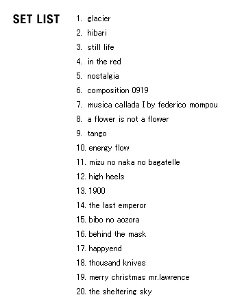 | 2009 Playing the Piano 2009 Europe Tour europe report Ryuichi Sakamoto (Piano) |